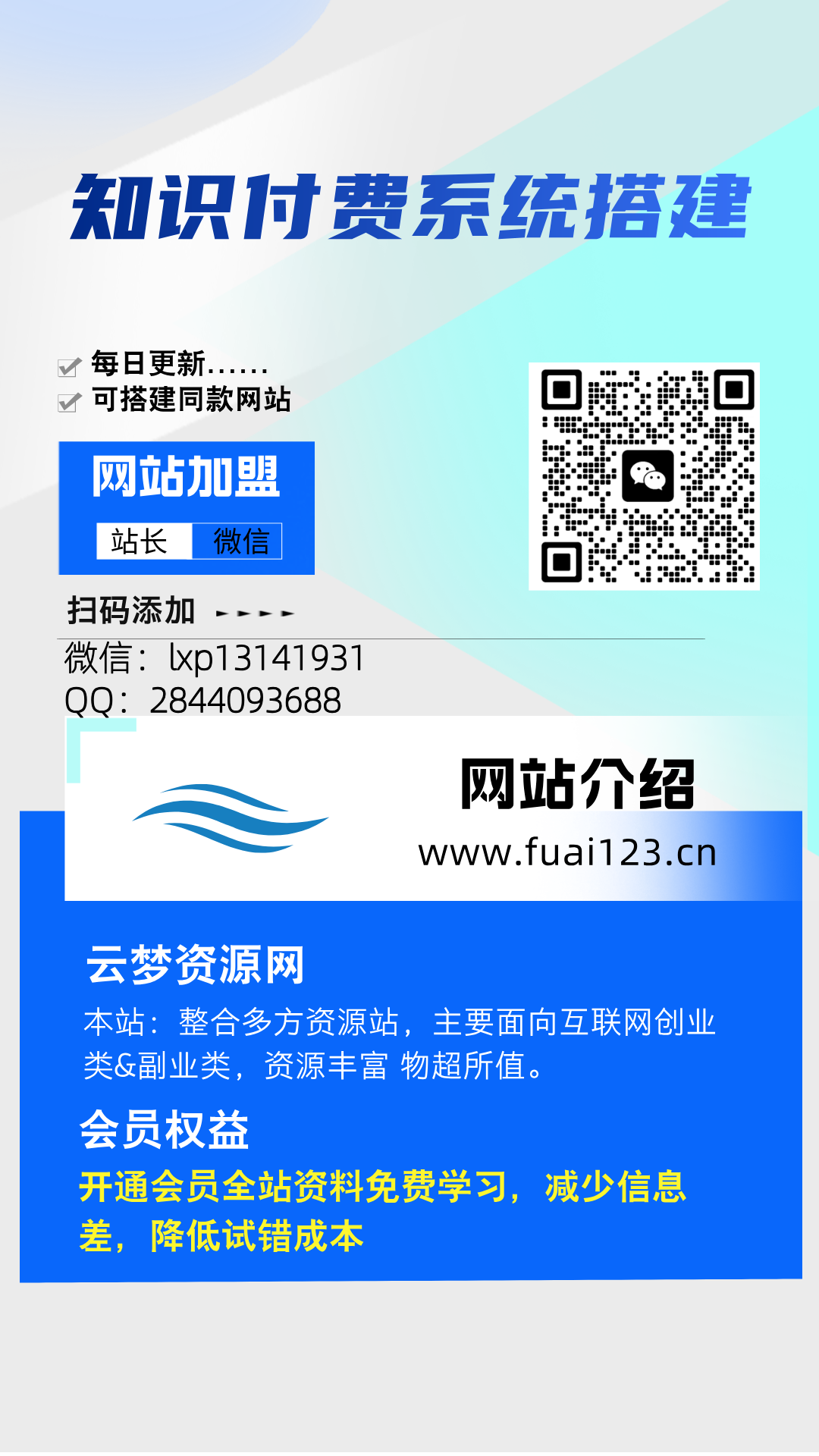 加盟XXX网创,加盟搭建同款知识付费资源网站,实现长期稳定被动收入~